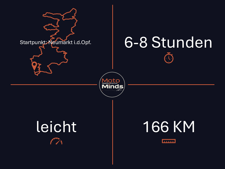 Dieser Trip2Yourself zwischen Neumarkt in der Oberpfalz und Amberg ist eine Einladung, bewusst langsamer zu werden – nicht im Tempo, sondern im Kopf. Nimm Dir mehrere Stunden Zeit, um den Oberpfälzer Jura nicht einfach zu durchfahren, sondern zu erleben. Sanfte Höhen, lichte Wälder und offene Landschaften wechseln sich in einem natürlichen Rhythmus ab. Die Straße fügt sich harmonisch in die Umgebung ein. Sie fordert Dich nicht heraus – sie trägt Dich.